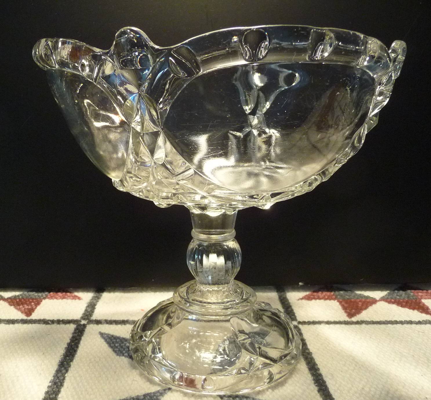 CANADIAN NOVA SCOTIA PRESSED GLASS CROWN OR PILLAR OPEN COMPORT 19th CENTURY