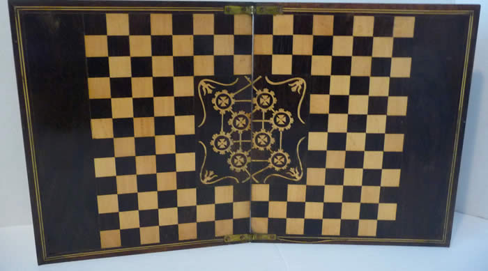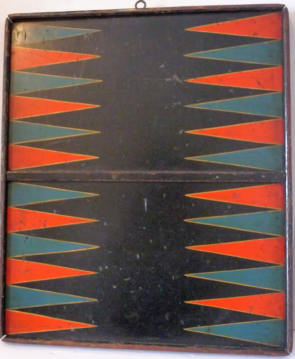 19th C Colourfully Painted Game Board 2 Sides