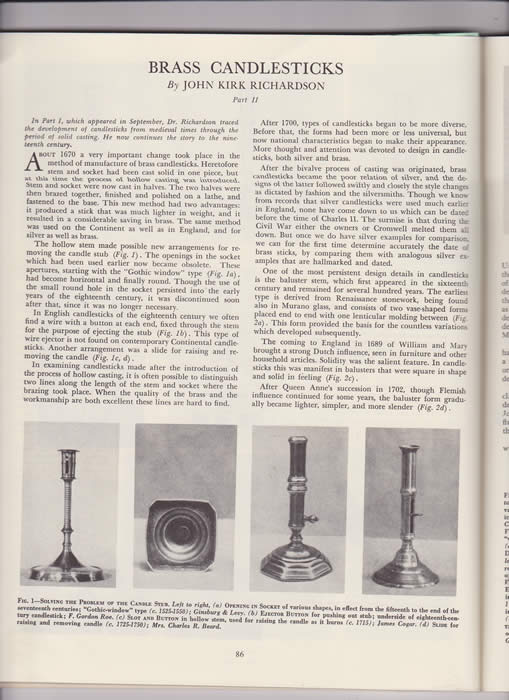 -Lighting in America – Brass Candlesticks by John Richardson Edited by Lawrence Cook p.86