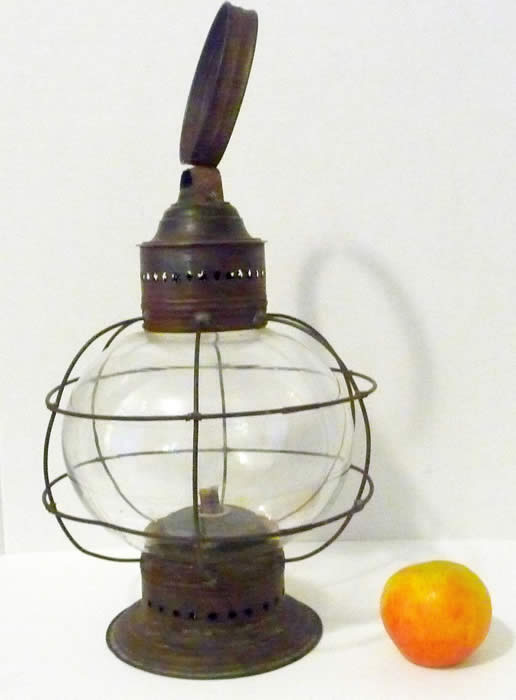 All Original including whale oil double burner. Large glass globe 10” diameter.