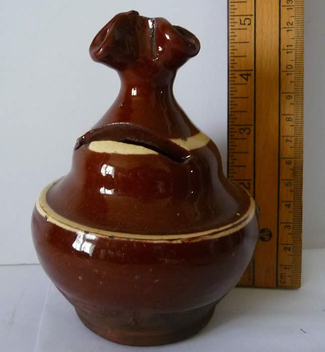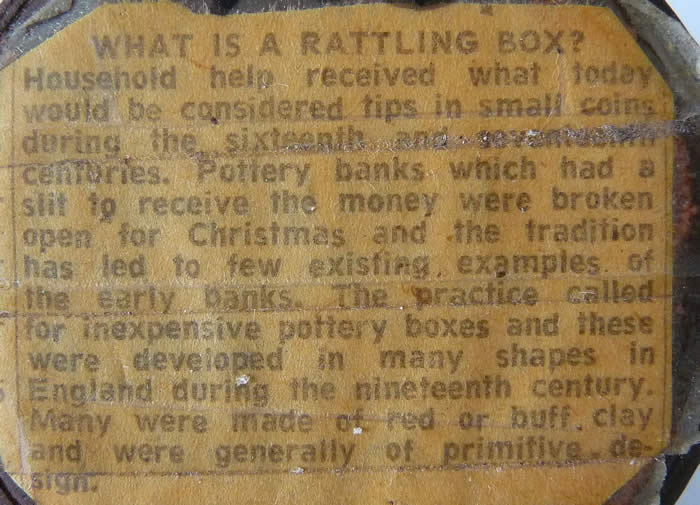 RATTLING BOX SLIP GLAZE POTTERY BANK 19th CENTURY