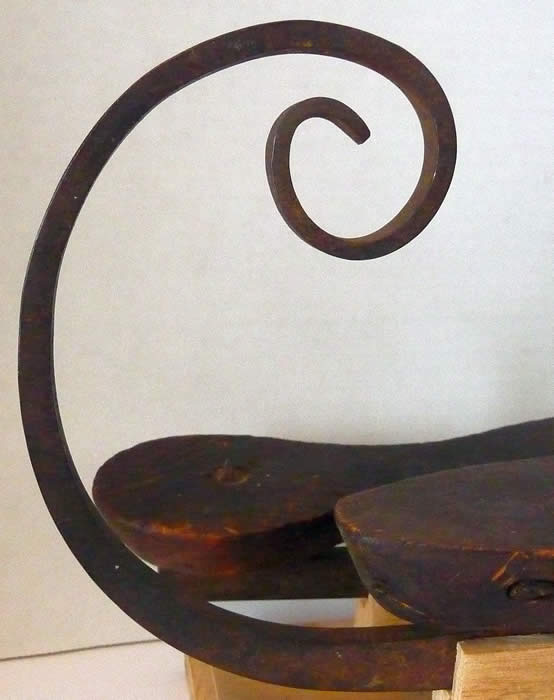 These beautiful handmade Antique Ice Skates, circa 1850's, have forged iron blades with  VERY large curls -  6 " (one of the largest I have ever had for sale). Old original dark red paint.